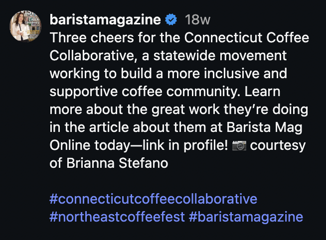 We learn more about the CCC: a statewide movement working to build a more inclusive and supportive coffee community.❋ Dreaming of Connecticut’s Coffee Future